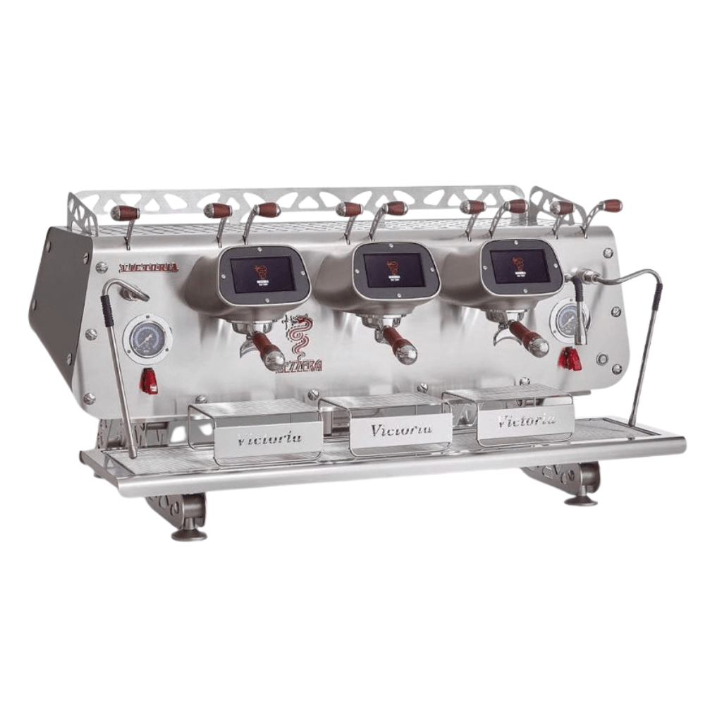 Victoria’s multi-boiler technology is engineered for intensive use, offering precise control of temperature and pressure through programmable brewing profiles that enhance both single origins and complex blends. The machine features independent boilers with dedicated on/off switches — two for steam and hot water, and one coffee boiler for each group — ensuring maximum productivity at all times. A dedicated program also allows the two steam boilers to be combined to create a continuous steam supply, essential during peak service.